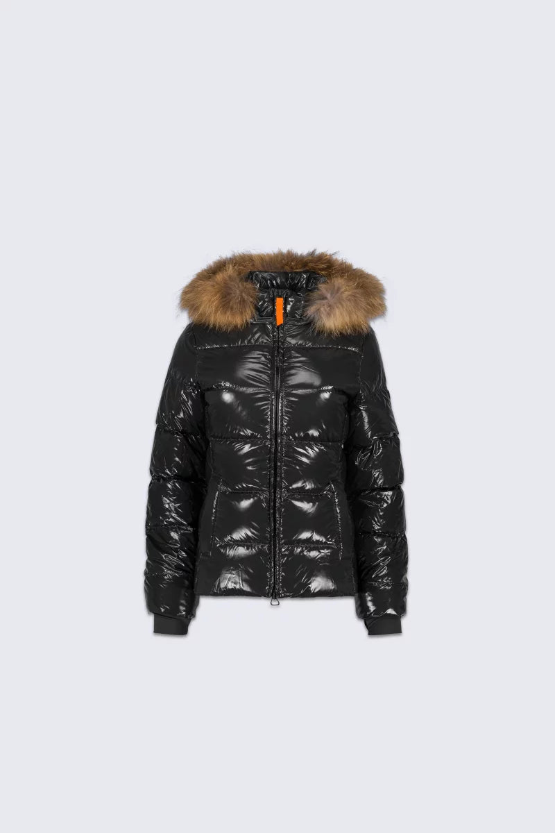 La doudoune LITTLE OLGA BRIGHT est cintrée et ajustée aux épaules. Elle possède une capuche amovible munie d’une bande en véritable fourrure, elle aussi amovible. Les manches tombantes sont resserrés par un élastique. L’ouverture milieu devant se fait par un zip en plastique injecté rehaussé d’une tirette orange. Deux poches sont insérées sur le devant. Le patch en silicone iconique de la marque est apposé sur l’épaule.