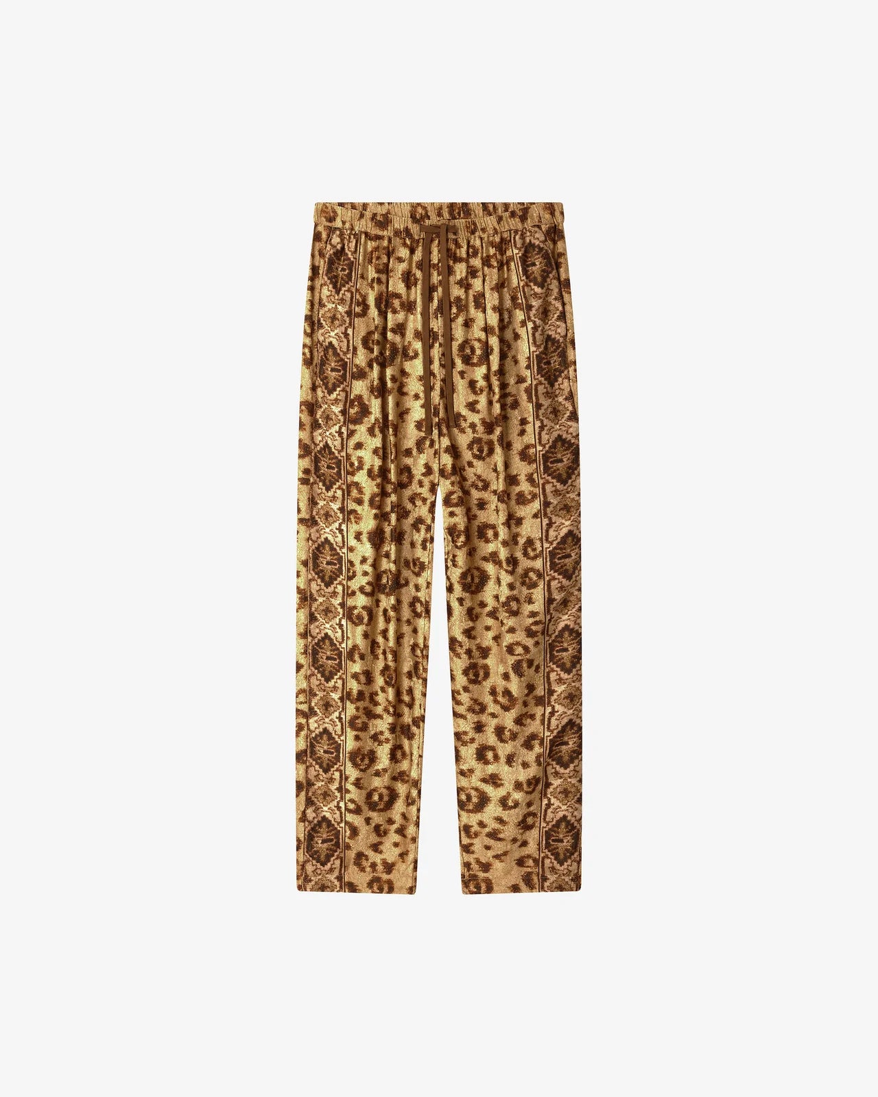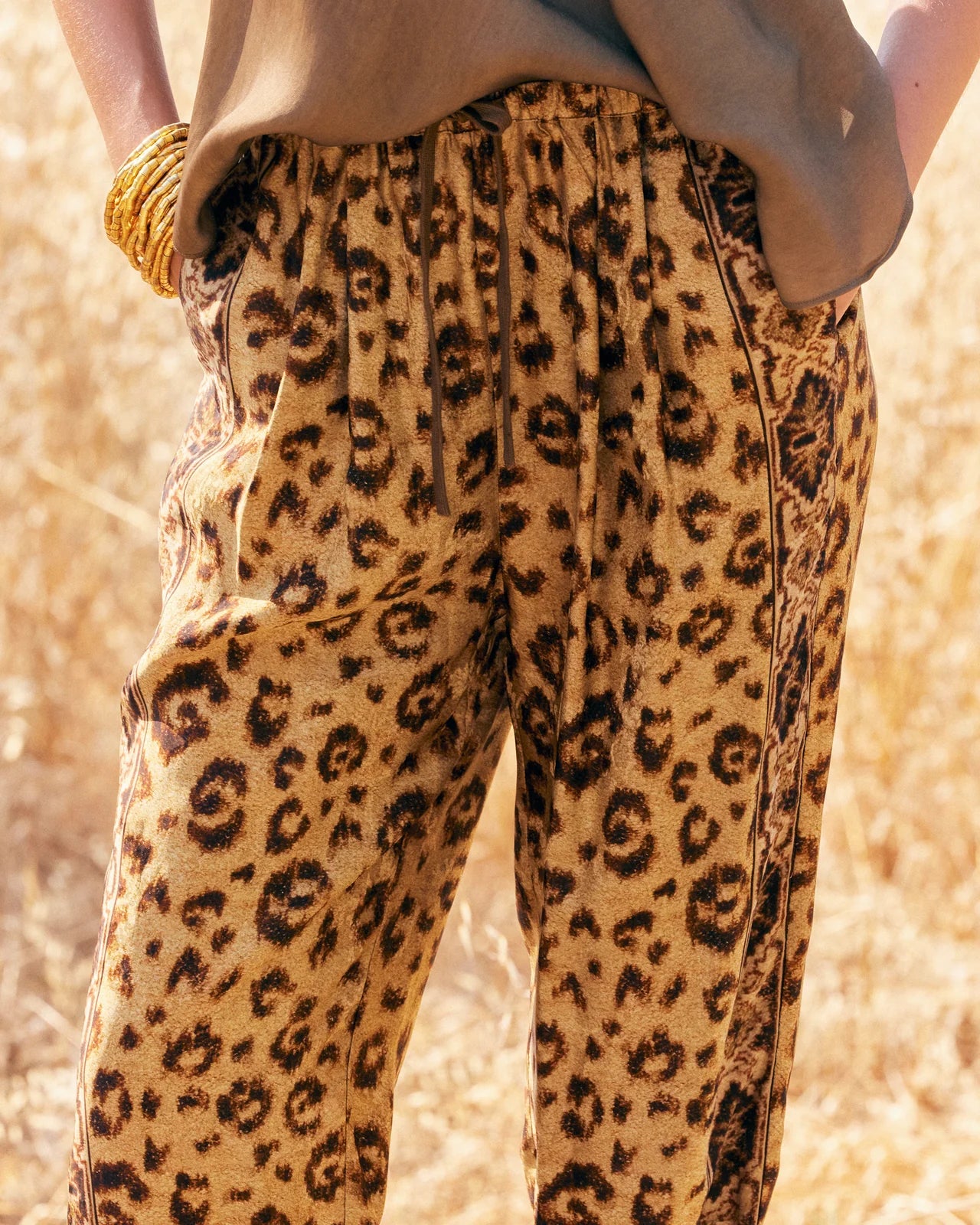 Élégance naturelle et confort maîtrisé. Ce pantalon droit, confectionné en viscose jacquard à imprimé panthère, dévoile une allure fluide et structurée à la fois. Le motif ton sur ton, subtil et texturé, apporte une touche de sophistication discrète. Sa taille élastique offre un porté souple et sans contrainte, tandis que les poches côtés soulignent une fonctionnalité sobre et urbaine. Une pièce forte à porter en total look avec le top "Lama" coordonné, ou en contraste avec des basiques contemporains.