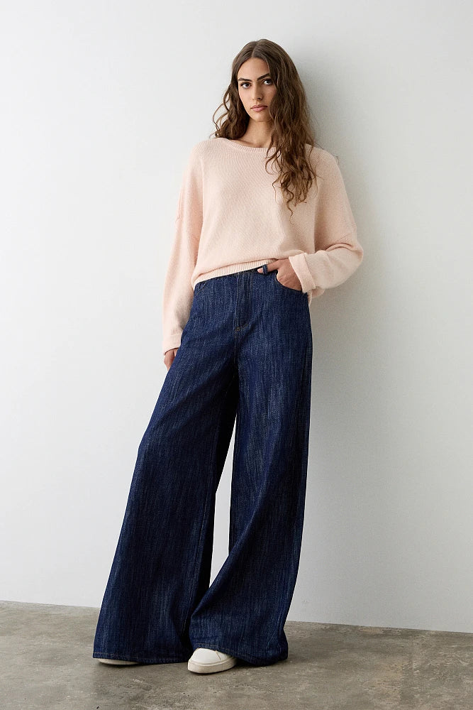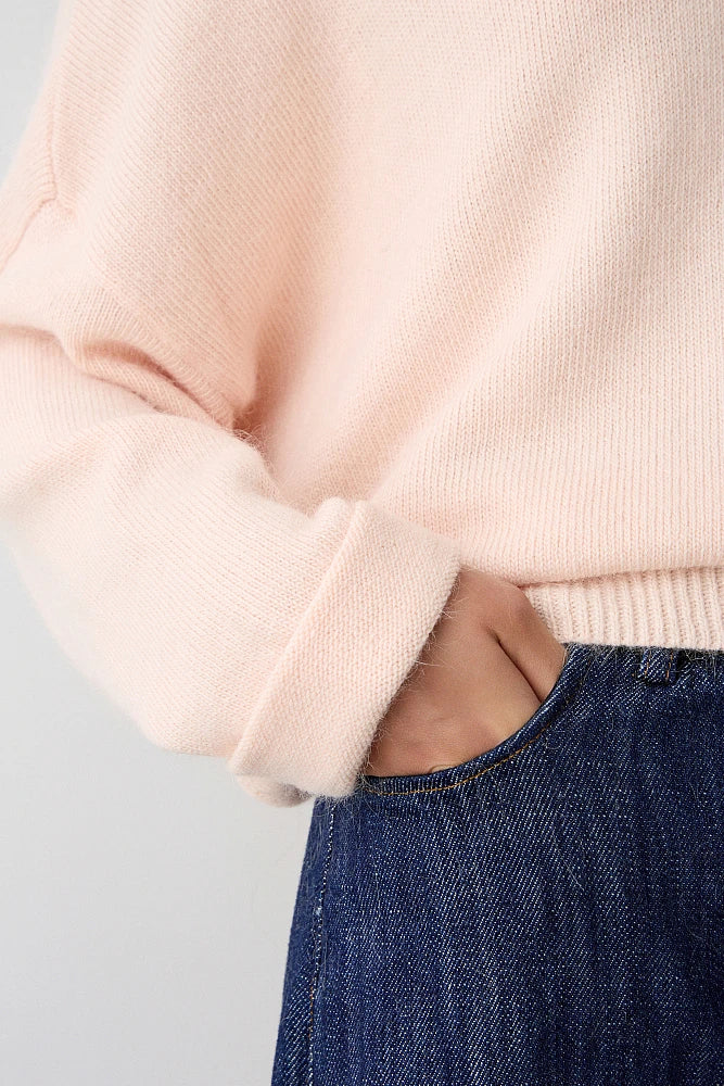 Pull avec ourlet inversé sur les manches, toucher doux, coupe ample, encolure droite, manches longues