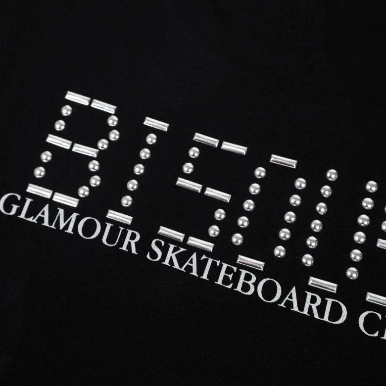 • Logo en strass métalliques en petit sur la poitrine, en grand dans le dos